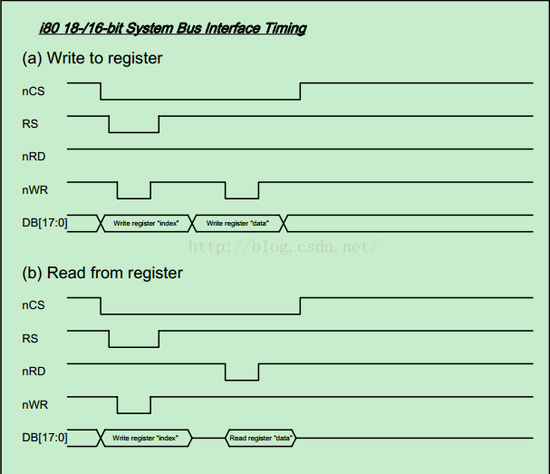 ILI9325的操作时序可以在其手册中看到如下: