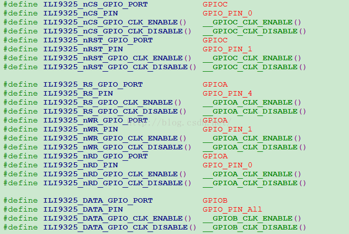 说明: ILI9325地址和数据都是使用PB口通信,因此PB口是
