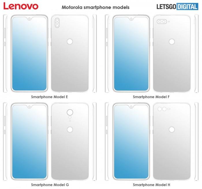 型号E至型号H,均采用了不同的相机设计方案。例如型号E和现有的Moto One非常相似;而型号F至型号H和现有的,摩托罗拉手机并没有直接关联,这些型号中的正面都是相同的,但是机身背面采用了不同的后摄设计。