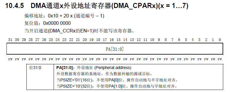 DMA通道x外设地址寄存器(DMA_CPARx)
