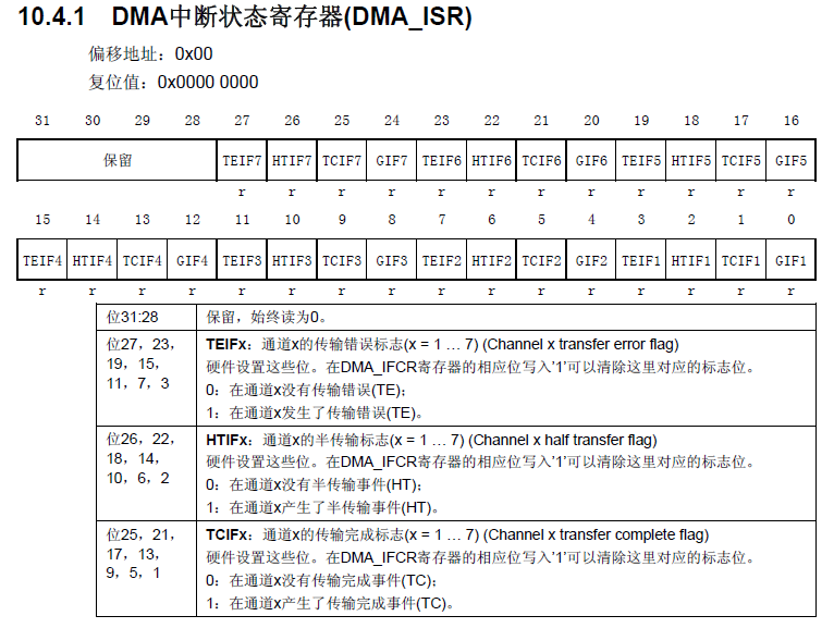 DMA中断状态寄存器(DMA_ISR)