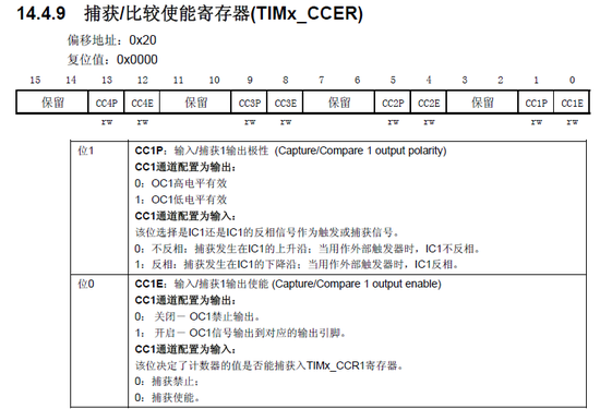 捕获/比较使能寄存器(TIMx_CCER)