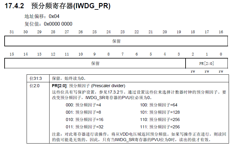 预分频寄存器(IWDG_PR)