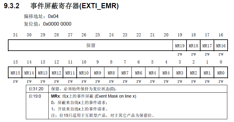 事件屏蔽寄存器(EXTI_EMR)
