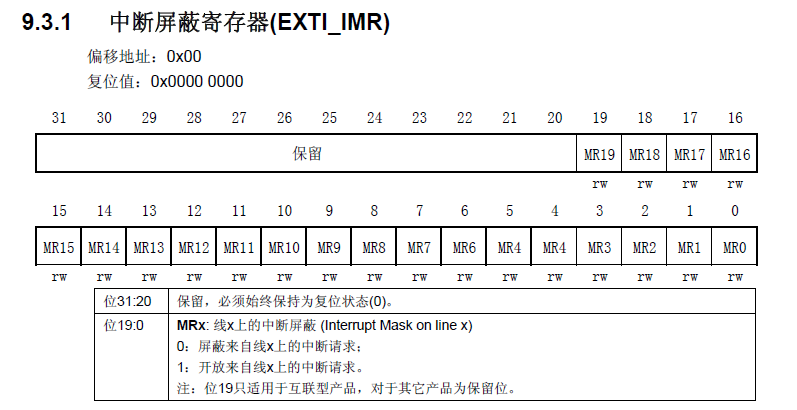 中断屏蔽寄存器(EXTI_IMR)
