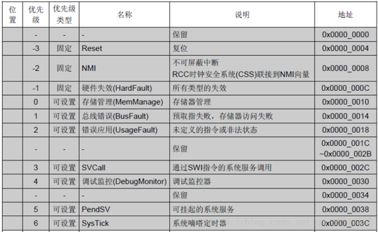因此,下面就直接介绍一下STM32F103系列的16个内核中断(异常)、60个中断: