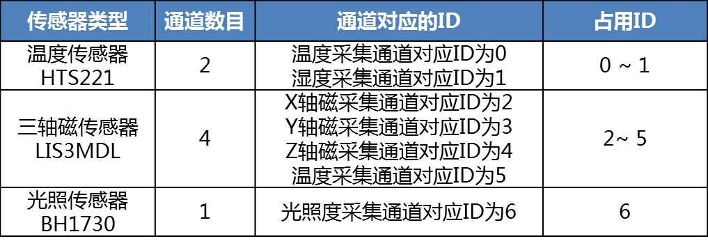 表1 传感器通道id分配
