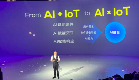 对此,他举例说到,比如在AI+IoT下空调可以用语音控制。而在AI×IoT下,人佩戴的智能手表会将人体信息数据传给云端,云端直接作用于空调,调节风量、温度和湿度等,不需要人进行操作。