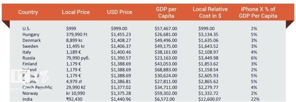▲iPhone X在发布时售价约为1440美元