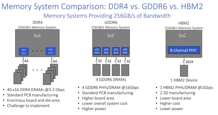 不过,较慢的片外数据使用高带宽内存可以节省功耗,并且可以与高速GDDR6一样快。如何做出这些决定取决有多种因素,包括设备的平均售价和选择的存储器类型。