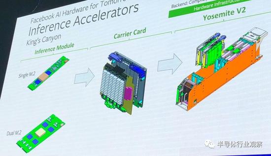 Rao大致谈到了将M.2推理引擎组合到微服务器卡上,然后将它们插入到2015年创建的“Yosemite”服务器机箱中,Facebook设计该机箱是为了完成基本的基础设施工作。但当天晚些时候,Naghshineh实际展示了它的实现方法。以下是M.2推理引擎的“Kings Canyon”系列:
