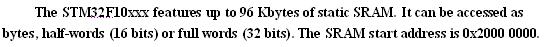 不同类型的STM32单片机的SRAM大小是不一样的,但是他们的起始地址都是0x2000 0000,终止地址都是0x2000 0000+其固定的容量大小。