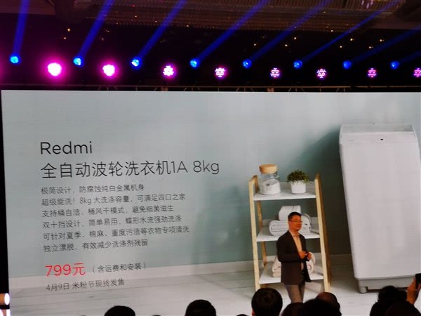 最后是价格,这款洗衣机售价是799元,4月9日米粉节现货发售。