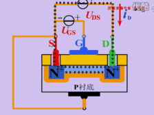 当UDS>0时,将产生较大的漏极电流ID。如果使UGS