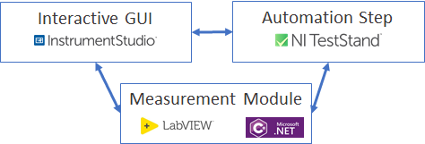 ● NI软件平台无缝衔接交互式GUI、测试模块开发、自动化程序导入,方便自动化测试开发。