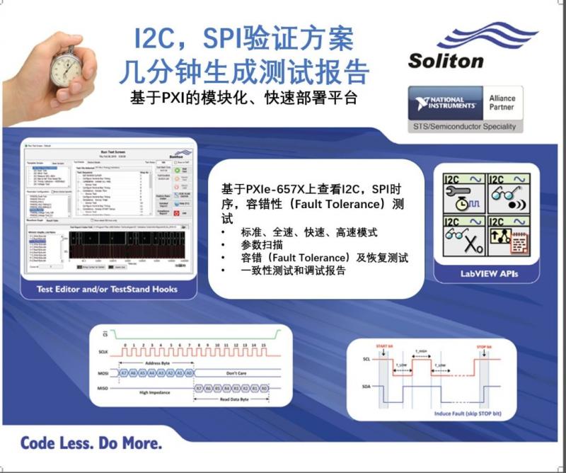 NI特有的高性能源表(Source Measurement Unit),满足电源管理芯片对于精度、测量速度的要求。使用基于向量的数字通道(Digital Pattern Instrument),利用数字模式编辑软件,轻松完成数字测试,并且Pattern 和代码均可复用在量产测试中。