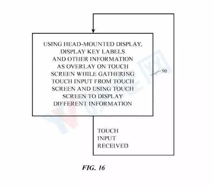 专利图16说明了在虚拟现实环境中采集触控屏输入的操作流程。