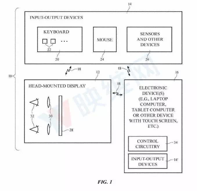 苹果专利图1是所述虚拟现实系统的图例。