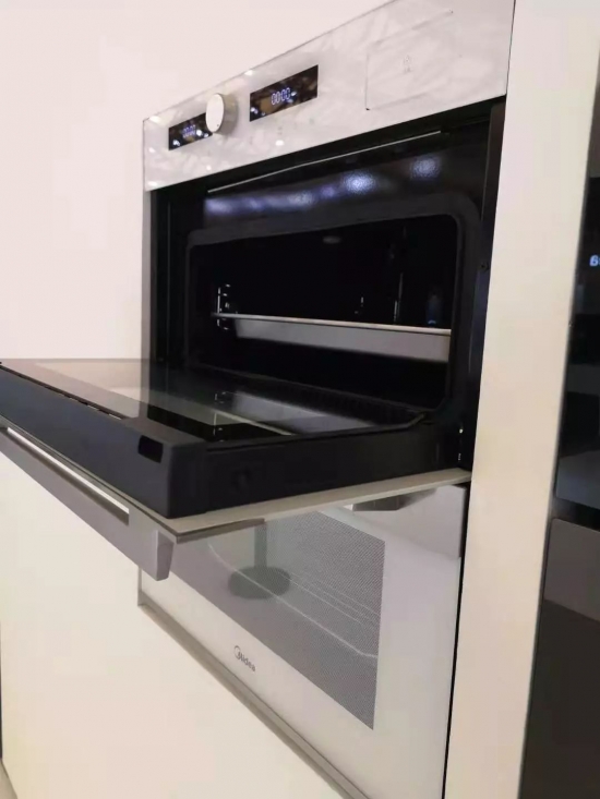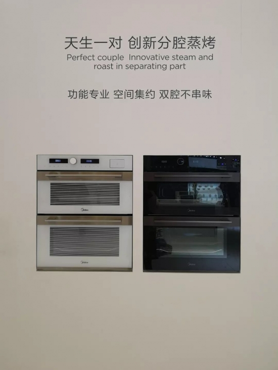 而新品双腔蒸烤一体机则沿袭了美的一贯的外观优势,并且有两个独立的空间,可以烹饪不同的食物,有机的结合在一起避免了食物味道混合,同时也节省了原本就不多的厨房空间。