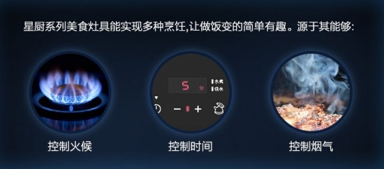 因为二者看起来浑然一体,不仔细看完全看不出是两台产品。在灶具边上刚产生的油烟显然很容易就被灶具边上的油烟机吸走,不失为一种有效的“套路”。