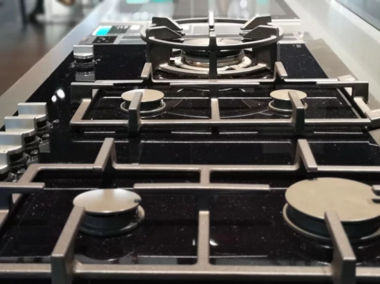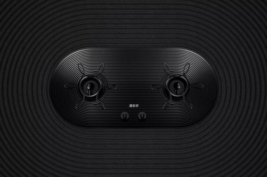 同样天工系列的燃气灶也一改传统灶具平整的样式,整体造型去掉了普通长方形灶具的四个直角,椭圆形能够节省更多台面空间,而与烟机同材质的水波纹面板采用新型材料易清洁,还能容纳部分从锅里流淌出来的汤汁,算得上充满生活感的硬核设计。
