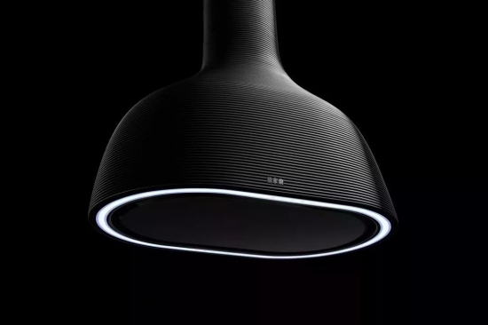 不同于传统方正的中岛式烟机,万家乐这款弧面烟机不仅外观打破常规、能双面操作,创新的增添了环形照明灯带,还强化了拢烟效果。