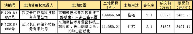 2018年8月10日,武汉长江存储以底价获得位于光谷东的P(2018)057号地块和P(2018)058号地块。
