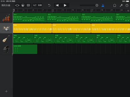 如果想更深层次的编辑单个乐器,乐队App也可以实现。CORSAK现场向我们演示,在轨道空白处进行扩展编辑,你甚至可以把名字的“画”在音轨上,会有意想不到的效果哦~