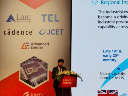 张素心董事长的报告分为六大部分,一是全球产业变迁和转移的规律,二是电子信息产业的变迁和转移,三是集成电路模式转换和工艺进步,四是新兴领域的应用成为关键驱动力,五是中国成为全球产业体系的重要伙伴,六是关于华虹集团的介绍。