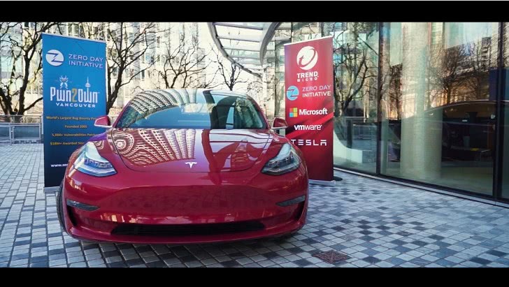 黑客在Pwn2Own大赛上赢得的特斯拉Model 3汽车(Pwn2Own官方视频截图)