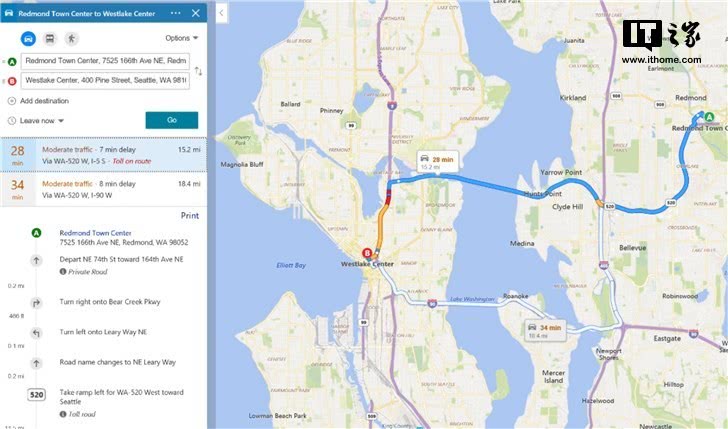 3月23日消息 微软必应地图终于获得了交通路况信息彩色标识功能。谷歌地图用户会感到非常熟悉,因为微软使用了与谷歌地图相同的颜色。其中蓝色表示没有交通延误,橙色和红色突出显示路线上遇到的中等到重度的交通延误。与谷歌一样,必应会根据当前流量更新和历史数据预测的组合显示颜色。