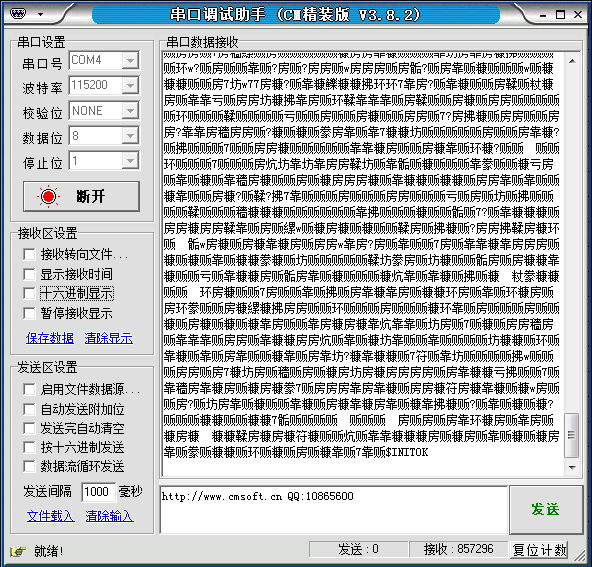 4,串口一上电未初始化时就开始疯狂的发乱码,等初始化完成之后就不发了。如图