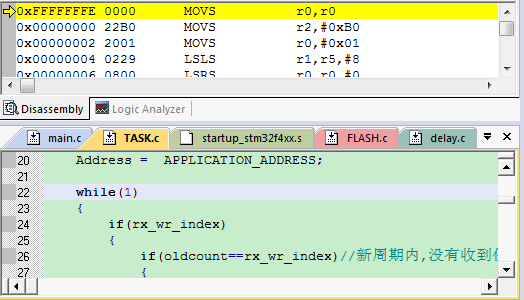 有中断时汇编显示就跳到了黄色的那句话。然后程序就死了。。其实进不了中断首先想到的是中断向量表的问题。当时一着急没想到这个问题。。复制过来的库文件是我写的IAP的APP程序,我把其中的中断向量表改了,我不是在main函数中改的,我是直接改的库函数中的偏移量,然后就把这个问题给忘了,导致找了半天终于意识到是中断向量表出了问题。。。