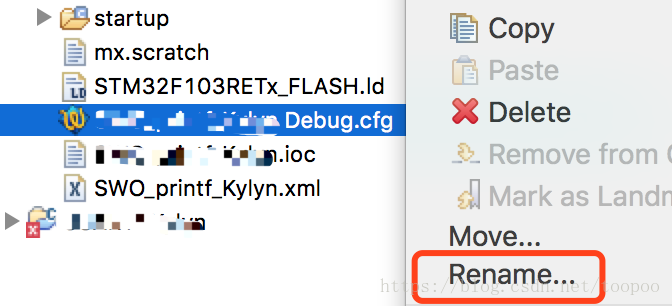 然后任务栏上点击Run图,当然会报错的,原因请查看另一篇我的博客(https://blog.csdn.net/toopoo/article/details/79680323),所以需要右键点击 项目名Run.cfg ,给它改个名字,
