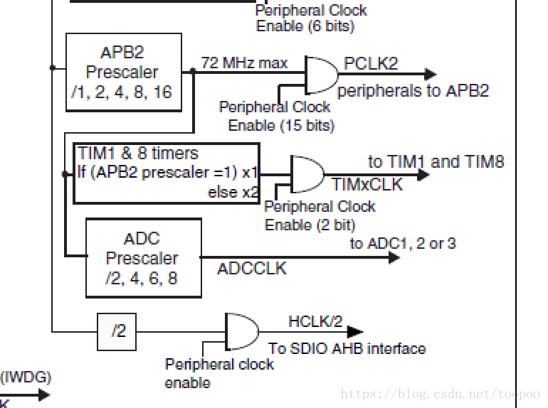 可以看到TIM1和TIM8是挂在APB2上的。