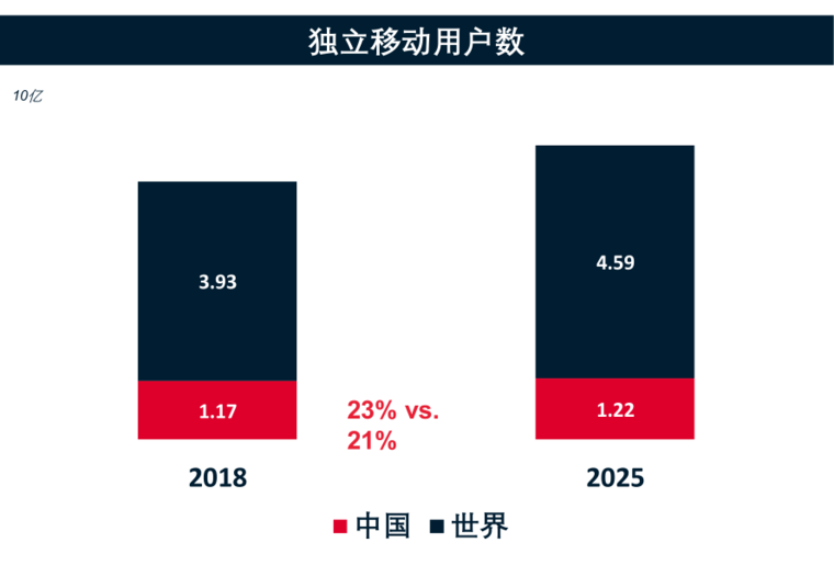 如今中国已成为世界最大的移动市场。虽然用户数已经趋向饱和但是移动宽带使用量领先世界。在非常可观的智能手机普及率推动下,4G与5G的融合移动宽带将创造空前的规模,并且推动中国移动经济发展也同样影响着世界其他市场。