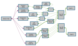 简而言之,AlgoBuilder提出一个零行代码快速开发原型的方法,使客户能够在他们的特定任务中评估我们的传感器。在点几下鼠标后,用户可从ST Nucleo开发板和X-Nucleo-IKS01A2扩展板直观地提取并导出许多参数,例如,加速度、角速率、磁场、温度、湿度、压力、四元数、FFT、运动强度指数,还能取用传感器数据并在特定任务中进行评估,无需花费精力和时间编写固件代码,这对开发者而言极其重要。