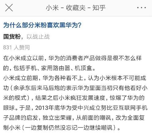集微网消息(文/数码控),在知乎上有一个问题叫做为什么米粉喜欢黑华为?其中有一个答案得到了不少人的赞同,