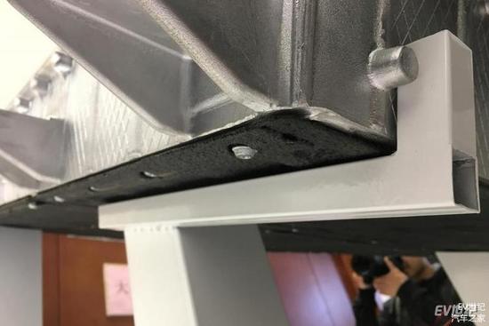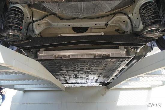 为了保障电池包安全,除了采用一体成型电池包外壳以及加入温控系统之外,还在电池两侧设计了防撞横梁来阻挡侧面冲击,电池包下壳体在已有铝合金保护的情况下还设计了一块厚度为1mm的钢板来避免行驶中异物对电池包的冲击和损伤,再次保障电池安全。