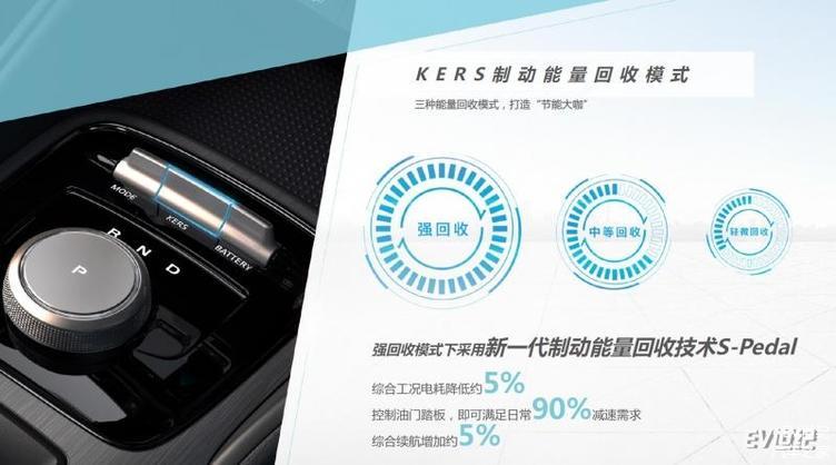 车辆还提供了三种动能回收模式,1、2、3挡位从若到强。无论哪个挡位,动能回收介入时都很很柔,没有什么突兀感,制动力的增加也非常线性整体感受很舒适。值得一提的是在3挡强回收模式下,增加了一项S-Pedal单踏板模式,该模式是制动力最强的一个模式,可以使用车辆速度快速降低,官方数据显示,在该模式下可使综合工况电耗降低5%,综合续航增加5%。