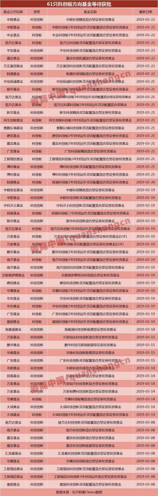 据券商中国报道,当前正在筹备的科创板方向基金已达61只,其中25只为科创板基金、36只为科技创新基金,即超过60只产品正在等待获批。初步测算公募基金将有3000亿资金投向科创板。