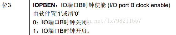 RCC->APB2ENR |= 1<<3; // 设置第三位,即使能IOPB