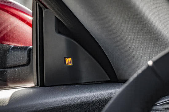 有别于多数市售车型将BSD侧方盲区监测功能提示灯,设计在外后视镜边缘的做法,威马EX5则将该提示灯放置在车内A柱夹角处,此举的优势在于能够减小驾驶员查看提示灯时目光的偏转角度,有助于提升行车安全性。