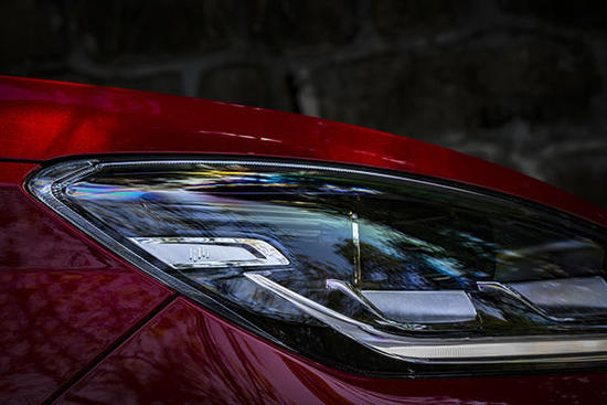 其中用于实现带停走功能的全速域(0-130km/h)自适应巡航、低速跟车随行辅助、高速巡航车道中央行驶辅助和车道偏离纠正等功能的“摄像头”和前毫米波雷达,分别位于前风挡顶部(三角区域)与前保险杠下部。二者分别拥有120m及160m的探测距离,重点在于,单目摄像头可识别4条分道线及16个物体(含机动车、行人等)。