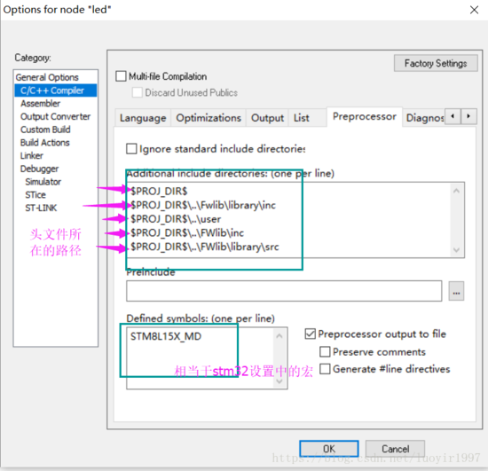 $PROJ_DIR$ 表示用户建项目的当前目录,途中显示的有stm8115x_conf头文件在项目中会使用,如果不把用户文件夹包含进来会报错 显示找不到stm8115x_conf.h头文件。