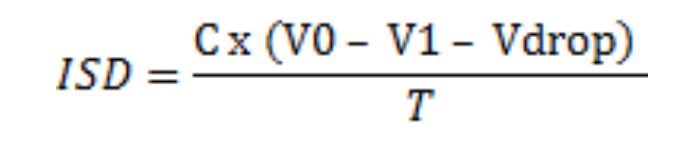 电容器ESR 是另一个影响放电特性的重要参数之一。超级电容器的电压会根据放电电流而下降。由于内阻(ESR)的存在,电压也成比例地下降。这些电压降会影响输出,特别是当电容器用于高放电电流和降低电压时。因此,考虑到电压降,有必要计算所需的特性。可通过以下公式计算。