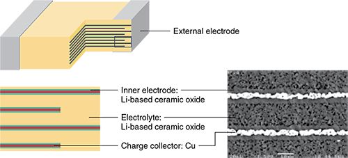 图|TDK CeraCharge 固态电池,使用固体陶瓷电解质代替液体电解质(来源:TDK)