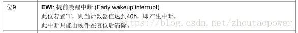 支持配置打开叫做 EWI 的提前唤醒中断,当递减计数器达到 0x40 的时候产生中断。
