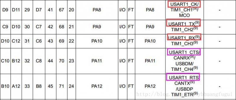 我们都知道USART中RX和TX这两个引脚的功能,这两个引脚是USART串行通信最常见和必不可少的两个引脚。但我们在手册中会发现关于USART的其他引脚:USART_CK、USART_RTS、USART_CTS,如下图: