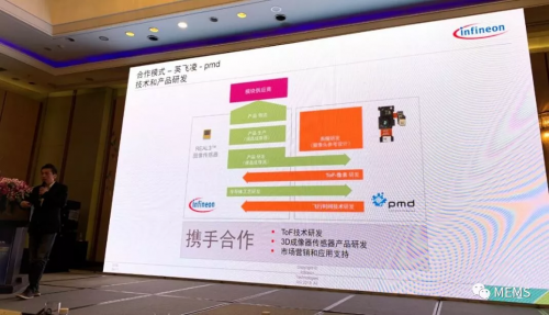 最后,麦正奇先生介绍了英飞凌与pmd的合作模式:英飞凌主要负责半导体工艺研发、产品研发和产生;pmd主要负责ToF像素和ToF系统(3D摄像头参考设计)研发。目前,双方已携手推出多款REAL3系列ToF图像传感器,其中第三代产品投入量产,第四代产品于今年2月刚发布。新款第四代REAL3图像传感器型号为IRS2771C,芯片面积仅为4.6mm x 5mm,提供150k(448 x 336)像素输出,接近HVGA水准的分辨率,较市面上多数的ToF解决方案高出四倍之多。